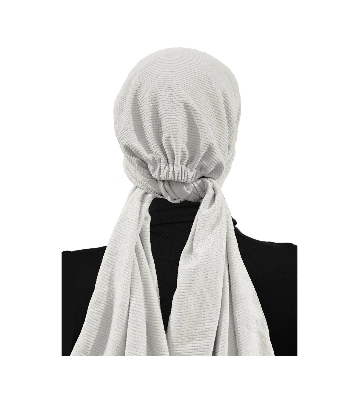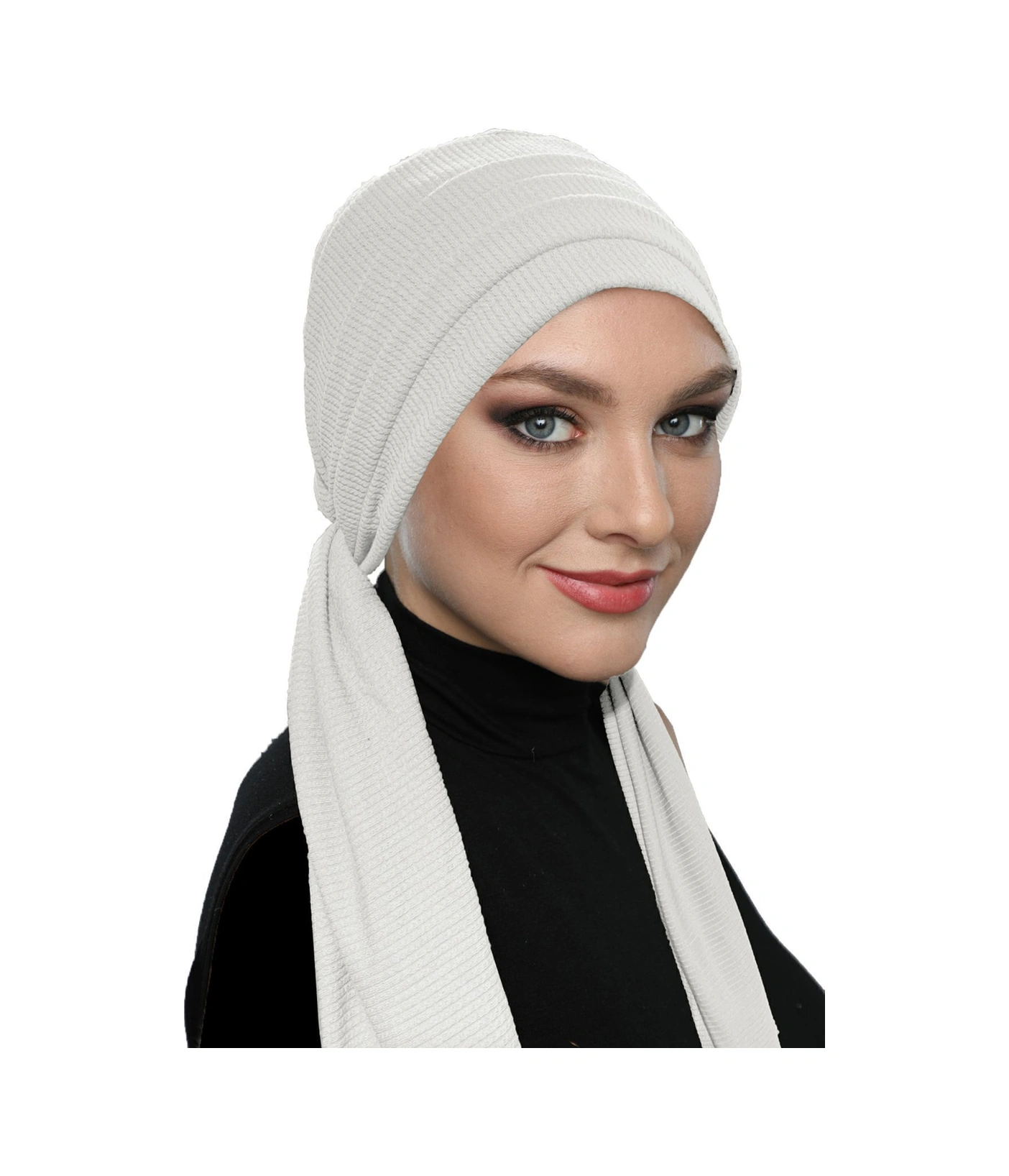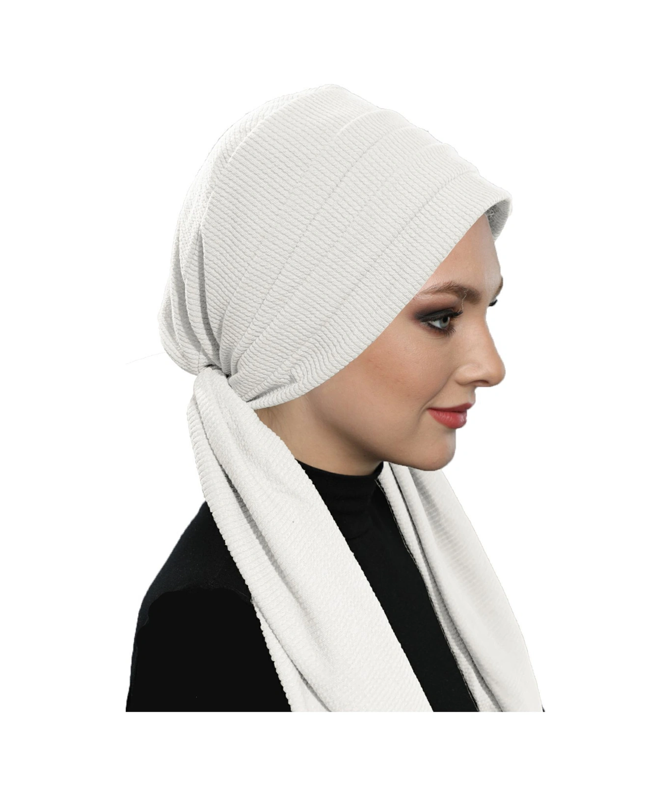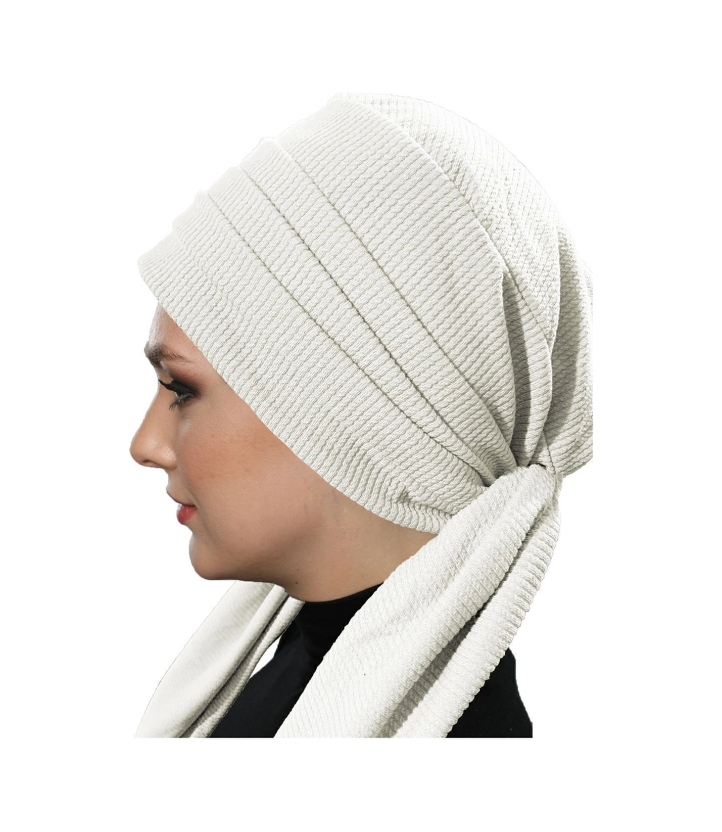 Fitilli Penye Bağlama Krem Hazır Türban Tesettür Bone Krem