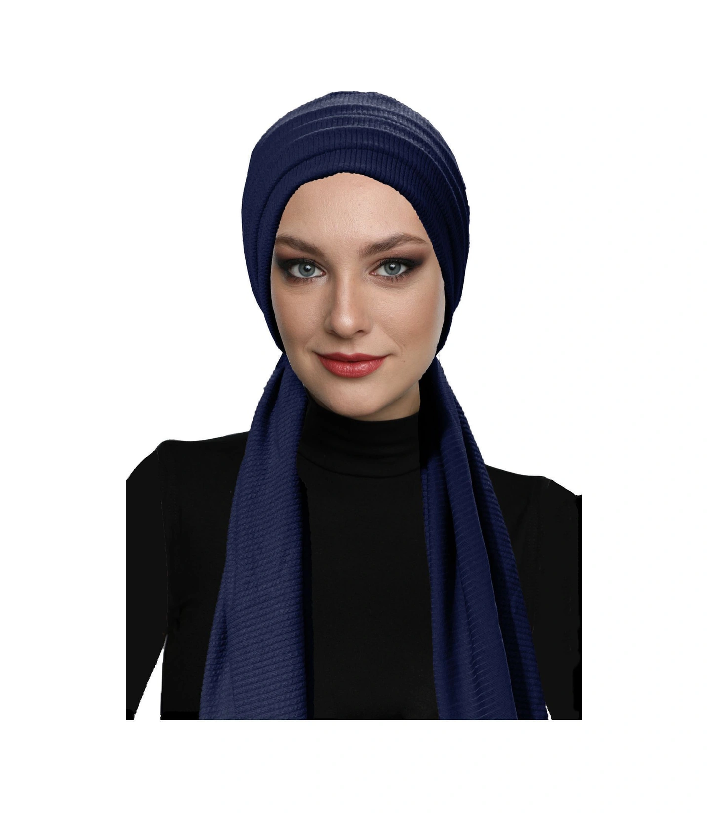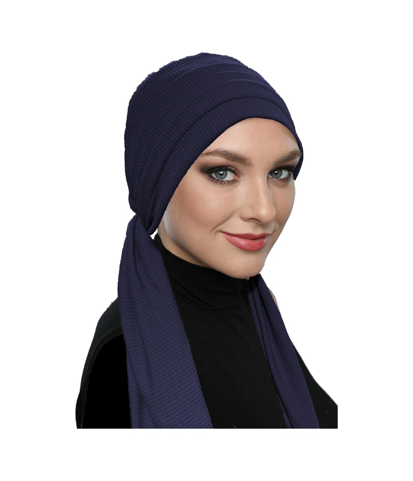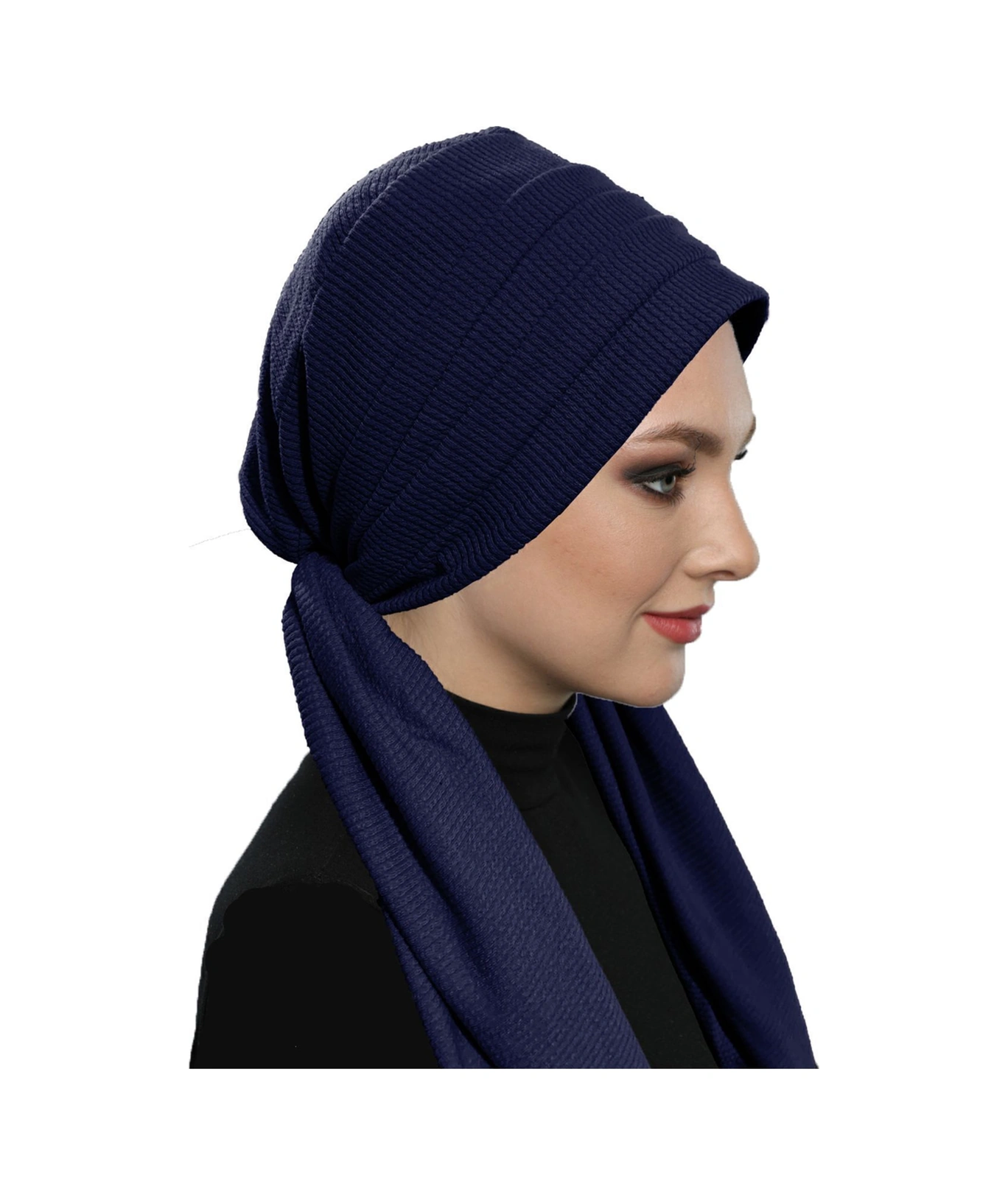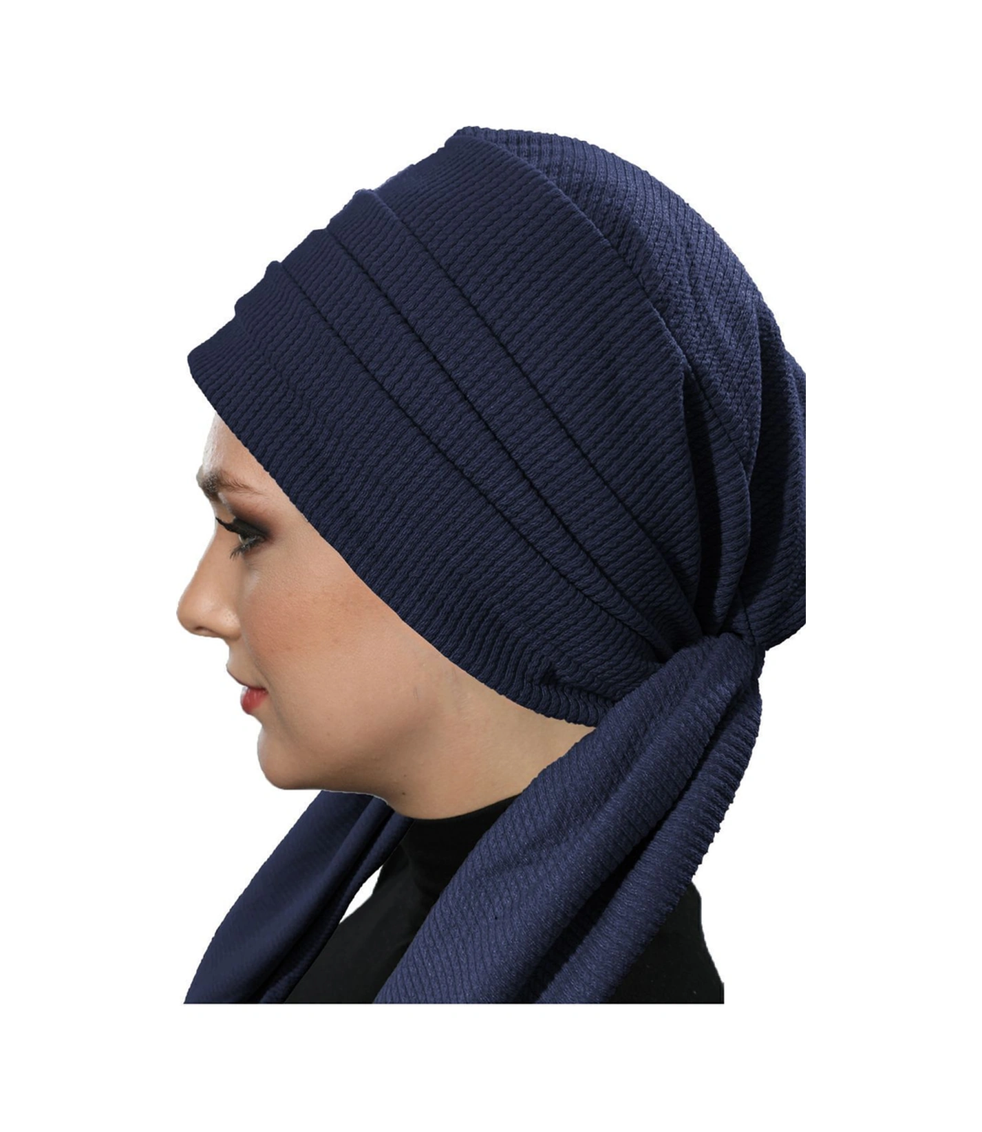 Fitilli Penye Bağlama Lacivert Hazır Türban Tesettür Bone Lacivert