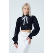 Fiyonk Fırfır Detaylı Poplin Gömlek Siyah