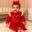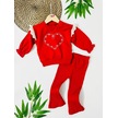 Fiyonk Kalp Baskılı Fitilli Tayt Mevsimlik 2 Parça Set Kırmızı