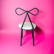 Fiyonk Makyaj Sandalyesi - Siyah İskelet Peluş Döşeme