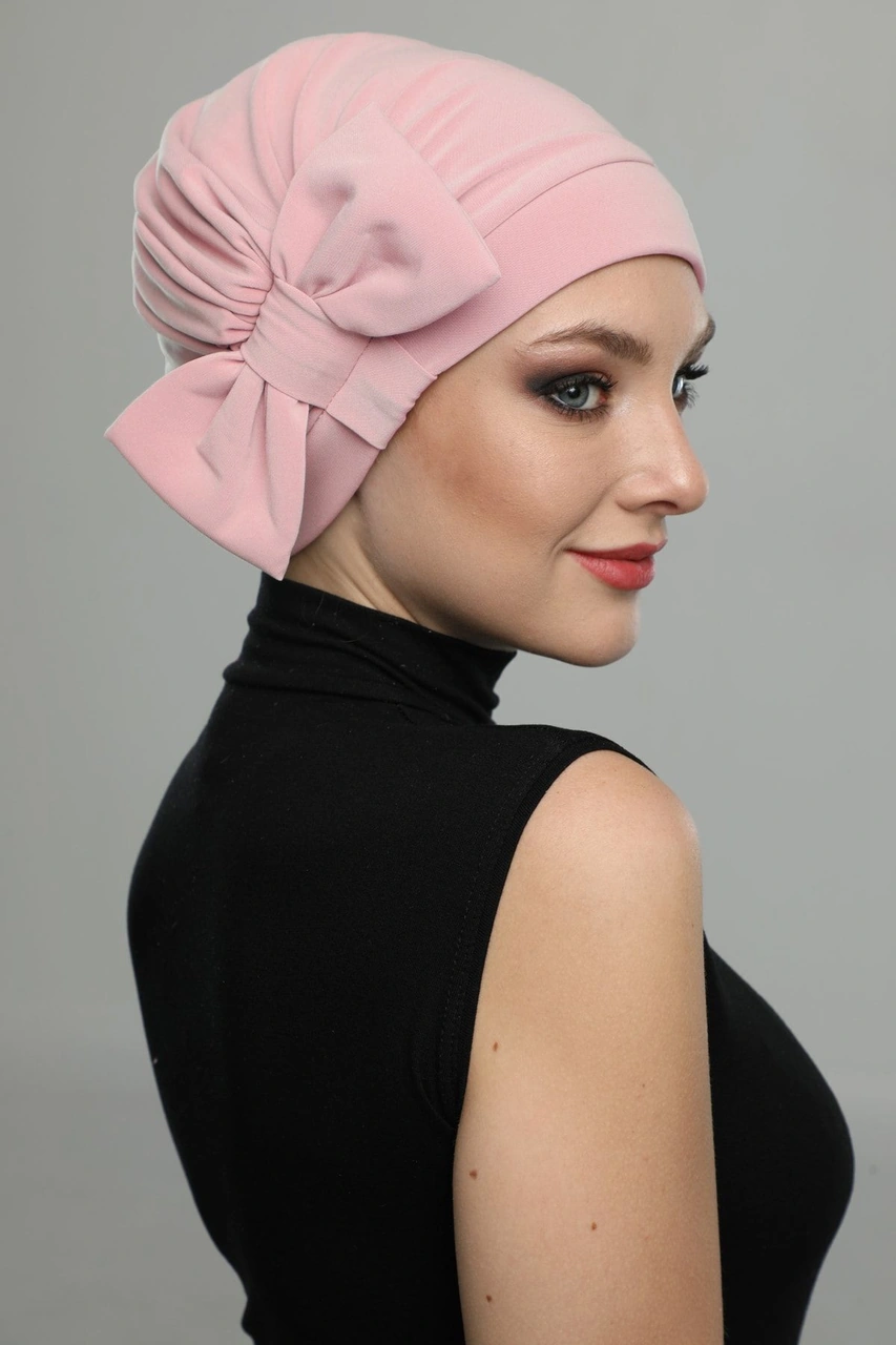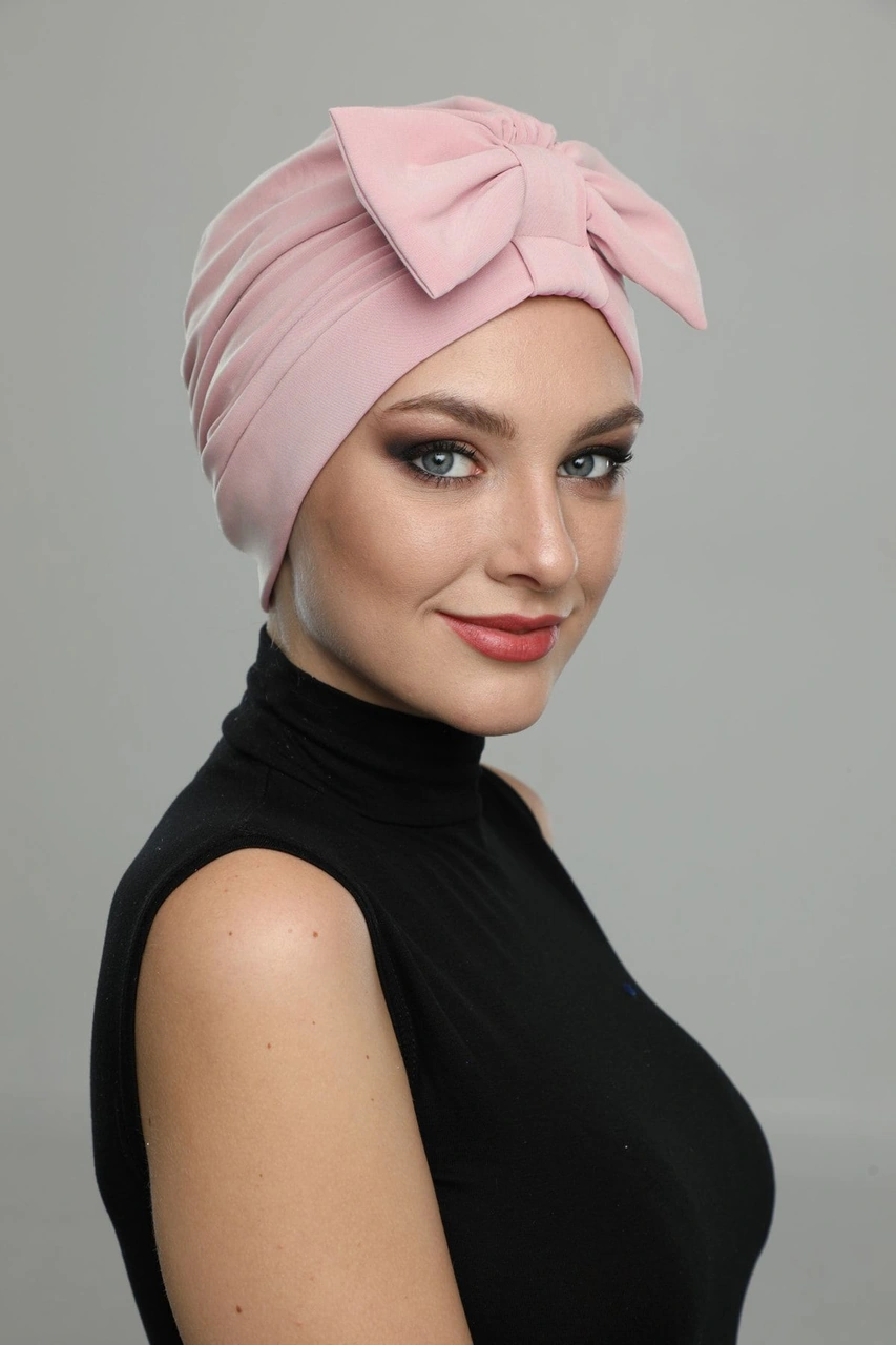 Fiyonklu Pudra Hazır Türban Tesettür Bone Pudra