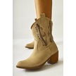 Fiza Krem Sivri Burunlu Nakışlı Zımba Detaylı Western Bot 001