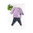 Flamingo Desenli Lila Renk Kız Çocuk Mevsimlik Taytlı Takım Lila