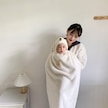 Kışlık Bebebk Battaniyesi Ayaklı Dış Kundak Yumuşak Dokulu Sevimli Ayıcık Nakış Arya Kumaş Pamuklu Ekru
