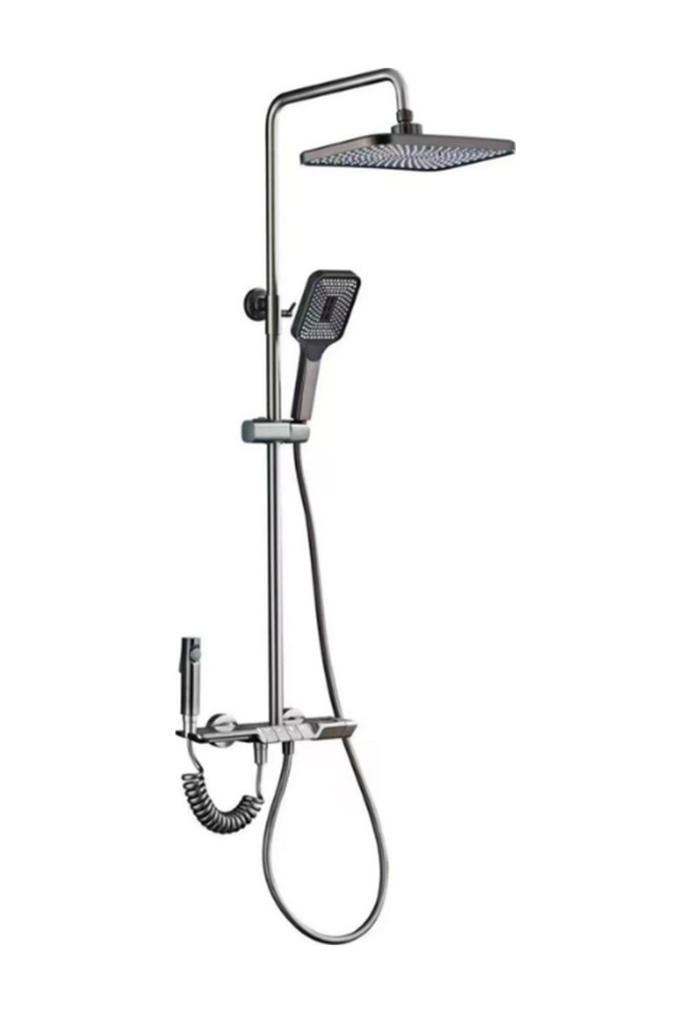 Primepickings B 300 Delik Kompresörlü Duş Başlığı Yüksek Basınçlı Yağış Duş Başlığı Su Tasarrufu Krom Ba 2 Katlı Gri