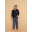 Flkn 7015 İnterlok Kışlık Ekose Pijamalı Erkek Pijama Takımı Antrasit