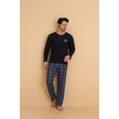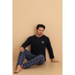 Flkn 7015 İnterlok Kışlık Ekose Pijamalı Erkek Pijama Takımı Lacivert