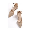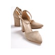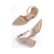 Flora Bej Süet Bilekten Bantlı Topuklu Ayakkabı
