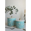 Flora Desenli Metal Saklama Kabı Seti - 2'li Set 1,7 Lt - 3,5 Lt Desenli