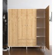 Floradesign Riva Elbise Dolabı 4 Kapaklı Çekmeceli Dolap Gardırop /meşe / Beyaz Meşe -beyaz