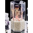 Flosoft Altıgen Fırçalık, Kapaklı Fırça Düzenleyici, Makyaj Kozmetik Takı Organizer Şeffaf