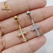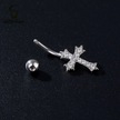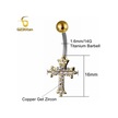 Flybuy Altın Gümüş Zirkon Çapraz Sembol Kavisli Titanyum Navel Ring, 1.5cm, Göbek Yüzük, Dini Tasarım, G23titan Marka, Paslanmaz Çelik Ve Titanyum, Erkek/kadın, Moda Aksesuar Gümüş