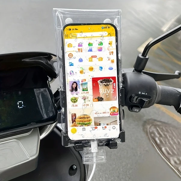 Fochsia Büyük Boy Bisiklet Yağmurluklu Telefon Kılıfı Şarj Kablosu Yuvası Pvc Malzeme