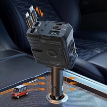 Fochsia Klasik Koyu Siyah Süper Mecha Stili 4ü1 İos Uyumlu+type-c Hızlı Şarj Kabloları Otomobil Ve Telefon İçin Taşınabilir Şarj Cihazı