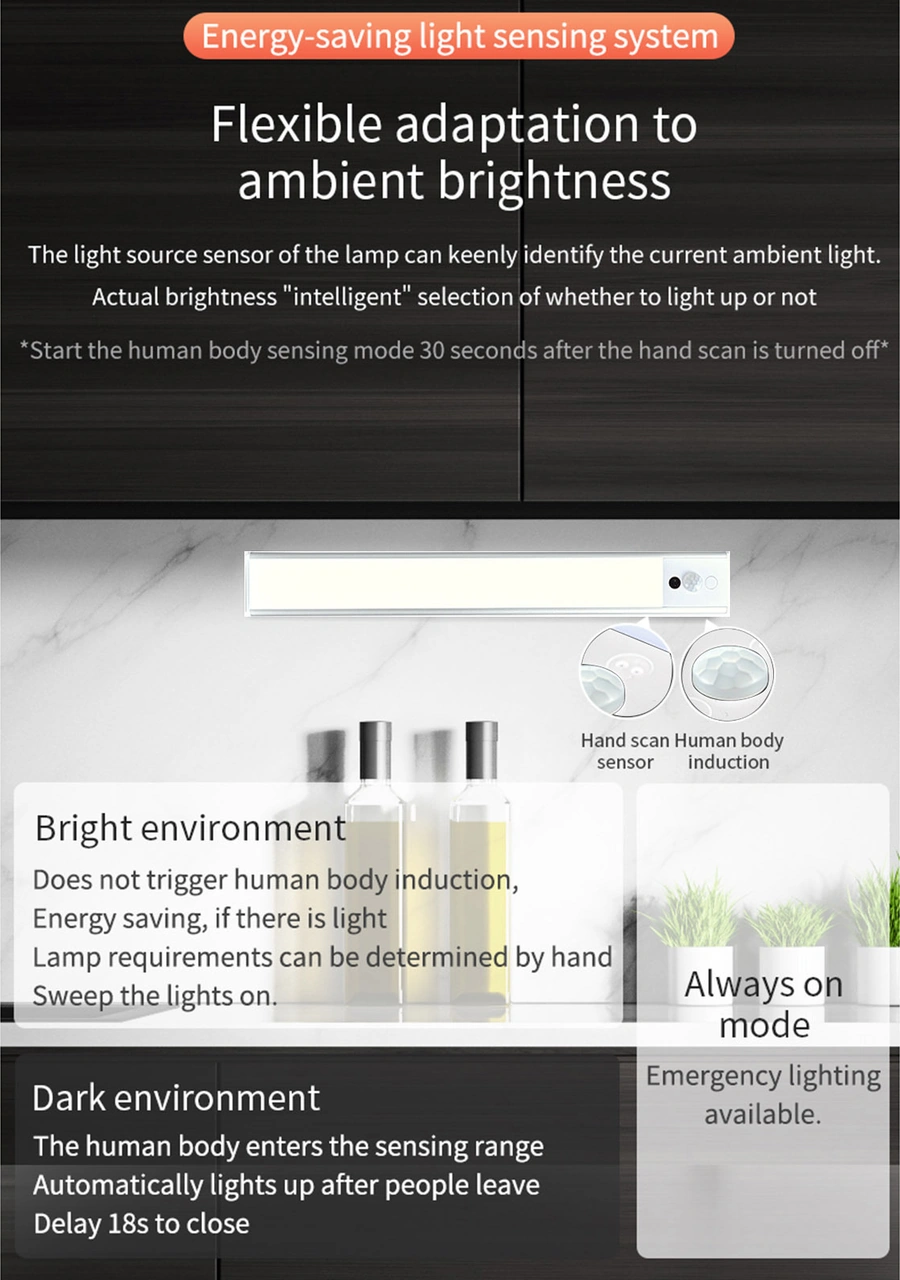 Folinda 20cm Gümüş Üç Renkli Ultra İnce Led Lamba - Vücut Ve El Tarama Sensörlü, Akıllı Otomatik Kapatma, Portatif Dolap/şarap Dolabı Aydınlatması Çok Renkli