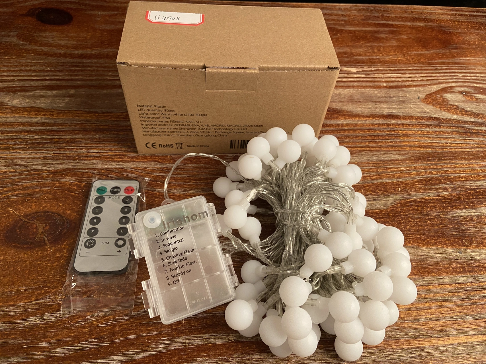 Folinda 80 Led 10m Islak Beyaz Işık Zinciri, Ip44 Su Geçirmez, 3xaa Pil Beslemeli, 13 Tuşlu Kumanda İle 0.6w Beyaz