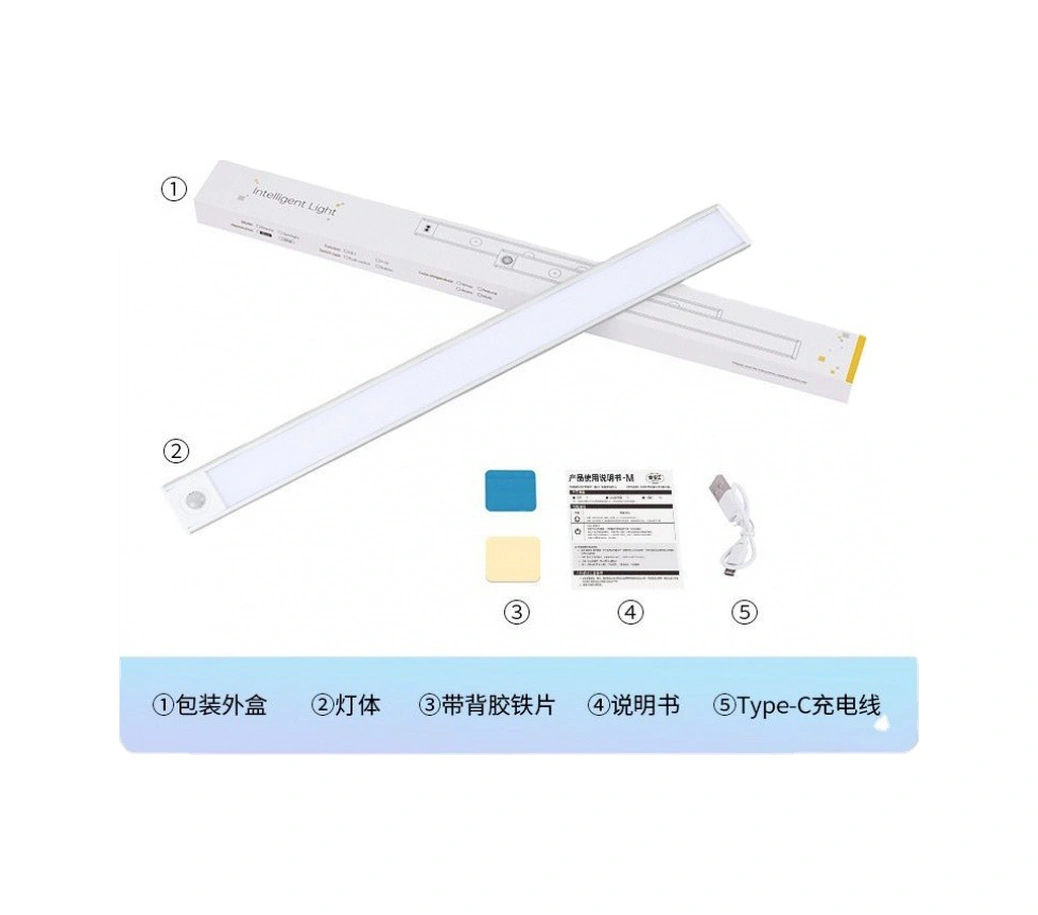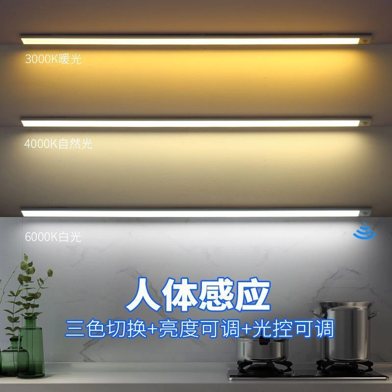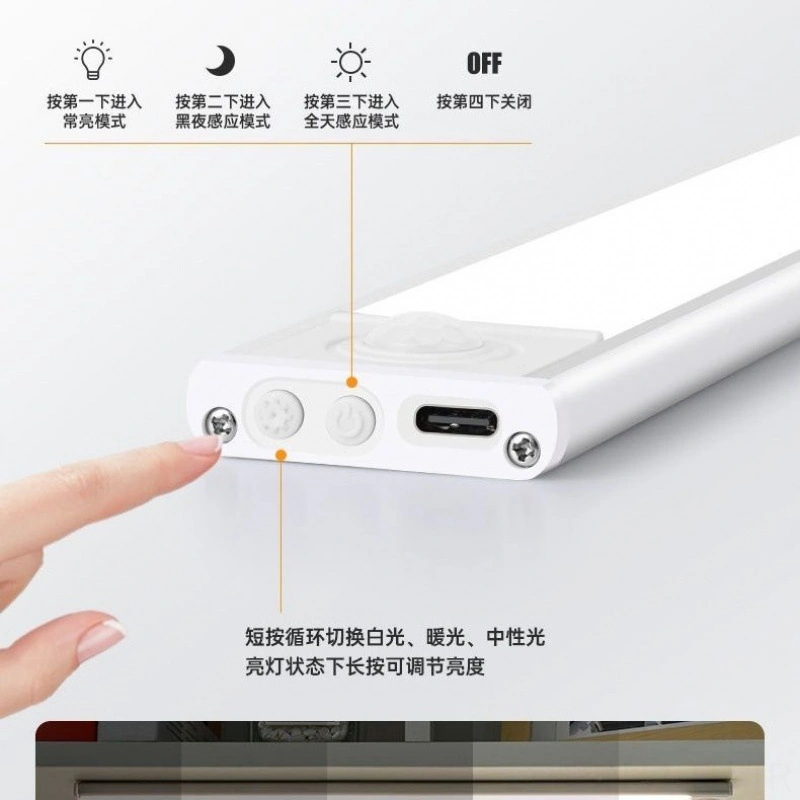 Folinda Alüminyum Kasa Kablosuz Entegre Insan Algılama Lambası - 40cm, Üç Renkli Işıık, Şarj Edilebilir, Dolap/çekmeceler İçin, Siyah Siyah