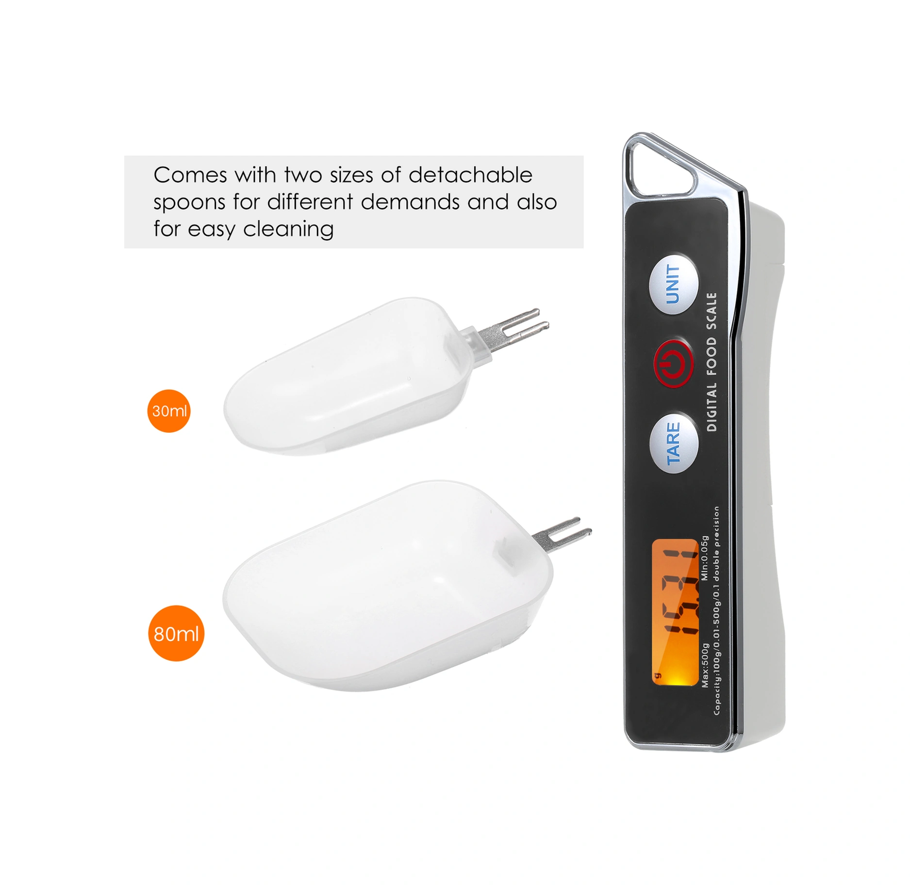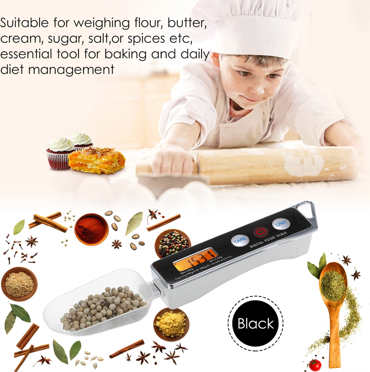 Folinda Ev Kullanıma Dijital Ölçüm Kaşığı, Hamur Şeker Tuz Hassas Ağırlık Ölçer, 0.05g-500g Aralığı, 30ml Ve 80ml İki Kaşık, Siyah Pil Dahil Değil Siyah