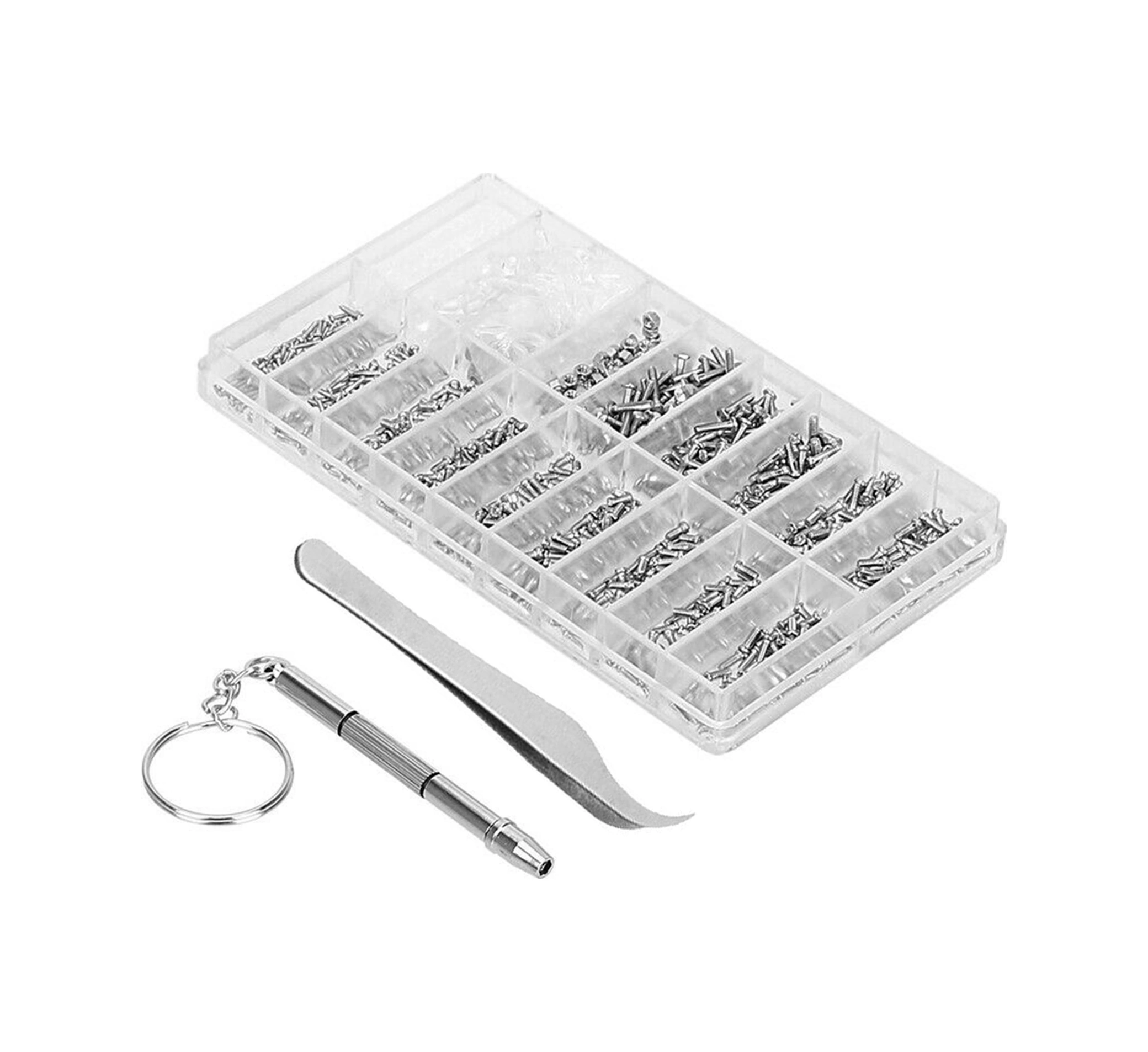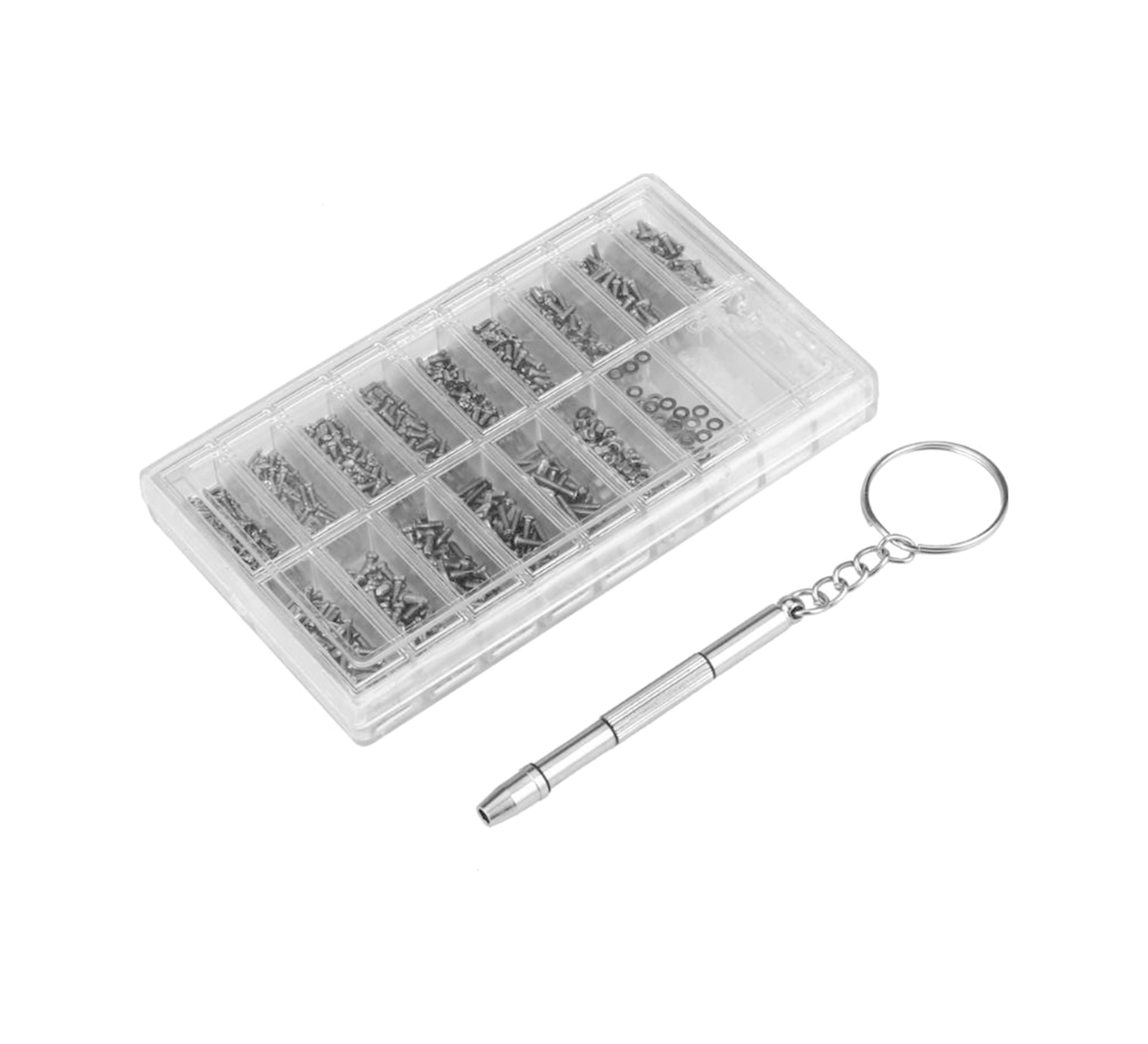 Folinda Gözlük Ve Saat Tamiri İçin 1000 Adet Çeşitli Somun, Yedek Parçalar, Tornavida Ve Pinçerle Bölmeli Kutulu Set