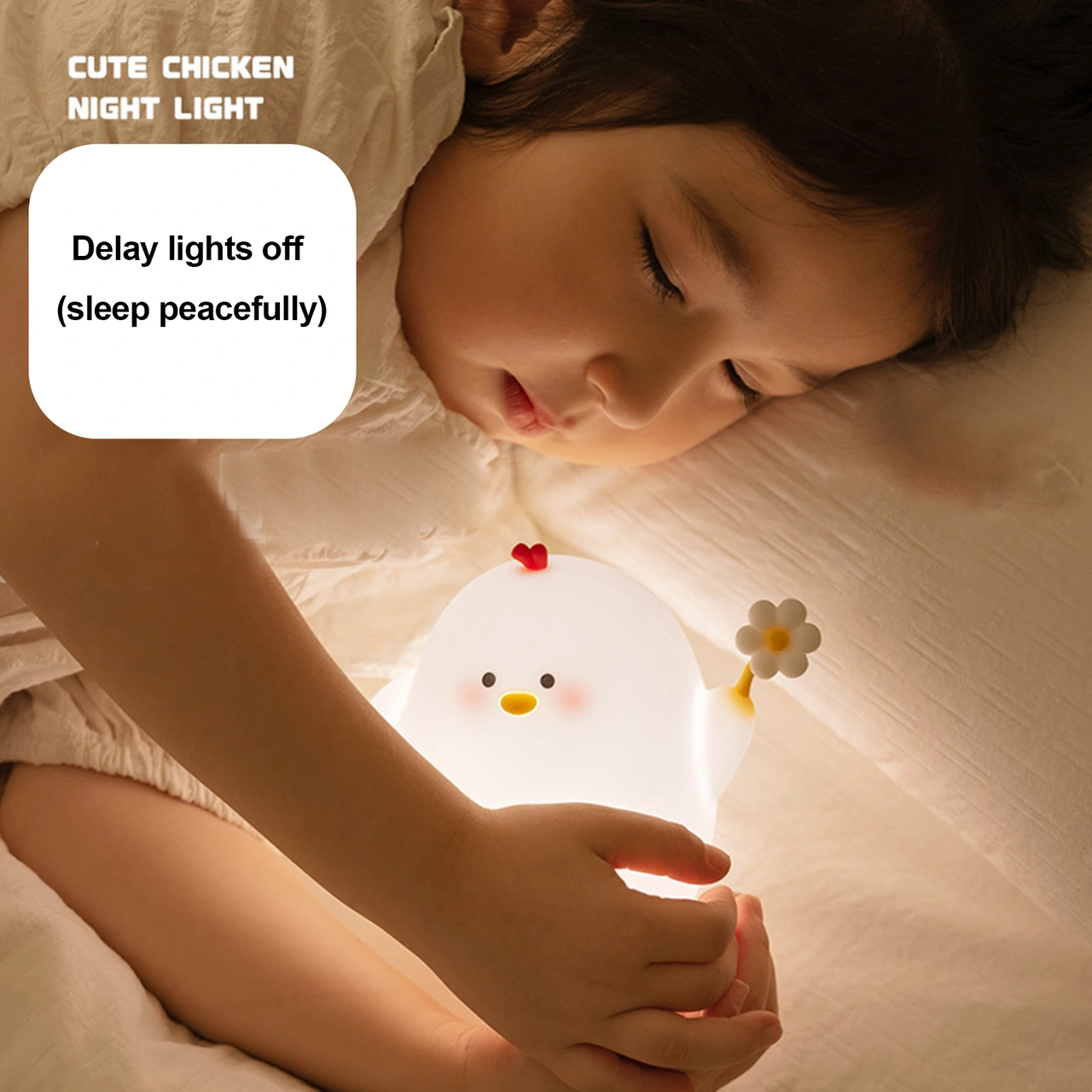 Folinda Yumuşak Işık Bebek Besleme Göz Korumalı Şarj Edilebilir Gece Lambası - Bir Dokunuşta Açılır, 3 Seviye Işık, Gecikmeli Kapatma, 1200mah Pil Beyaz