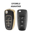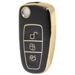 Ford Courier Focus Fiesta C-max Mondeo Custom Galaxy 3 Buton Nano Deri Anahtar Kılıfı Siyah-gold