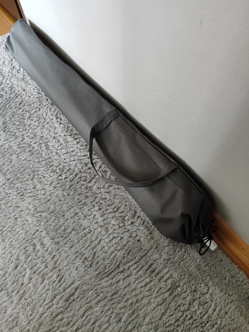 şemsiye çok kaliteli kumaşı muazzam kalın branda kumaş,demirleri kalın ve rüzgârda etkilenecek gibi değil.360 derece kolaylıkla eğilip dönebiliyor.Tasima çantası da gerçekten kaliteli kalın branda kumaş.Fiyatini hak ediyor.2 günde elime ulaştı.Saticiya teşekkürler.