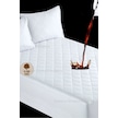 Üstü penye kumaş ( içi dolu pamuklu), iç kısmında ki yüzeyiı su geçirmez naylon.Etrafı lastikli gayet iyi tam ölçüsünde oldu.