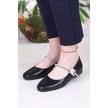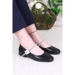 Siyah Süet T-strap Mary Jane Tasarım Babet Siyah Süet