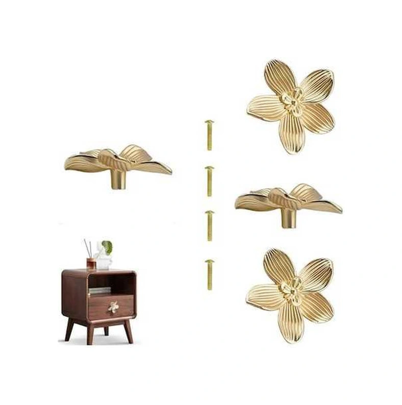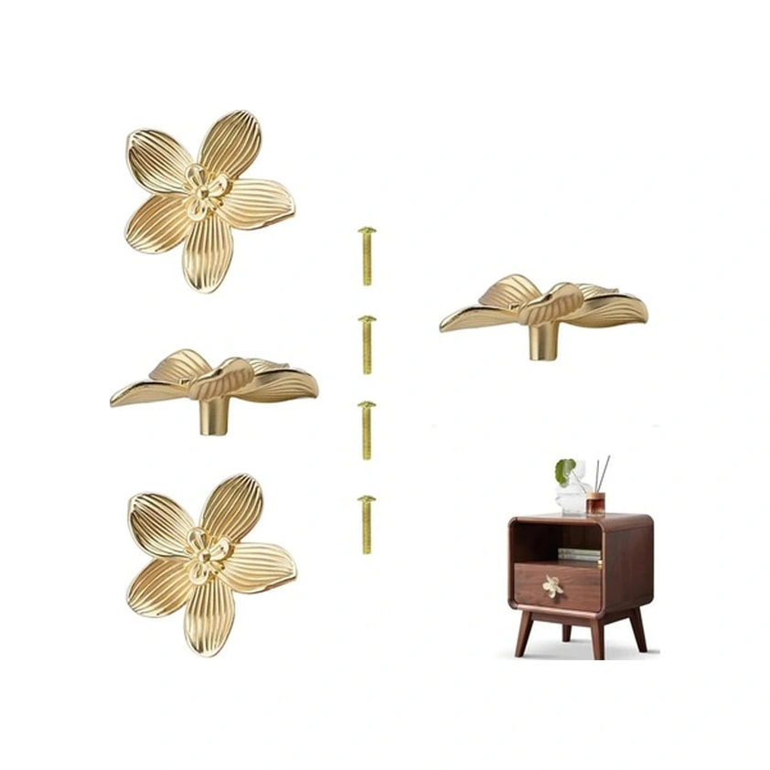Fortunelane Altın Petal Çelik Dolap Kolu, 4 Adet, Zenginleştirici Dekorasyon