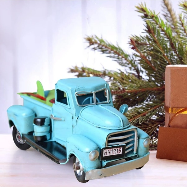 Fortunelane Klasik Metal Kamyon Dekoru: Masa Ve Ev Dekorasyonu İçin İdeal, Çocuklar İçin Noel Hediyesi, Mavi Renk Seçeneği Mavi Mavi