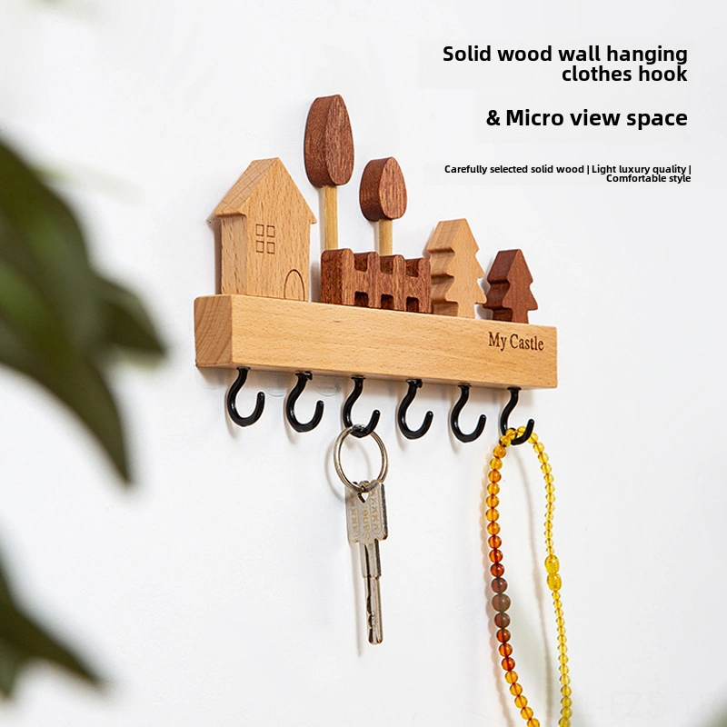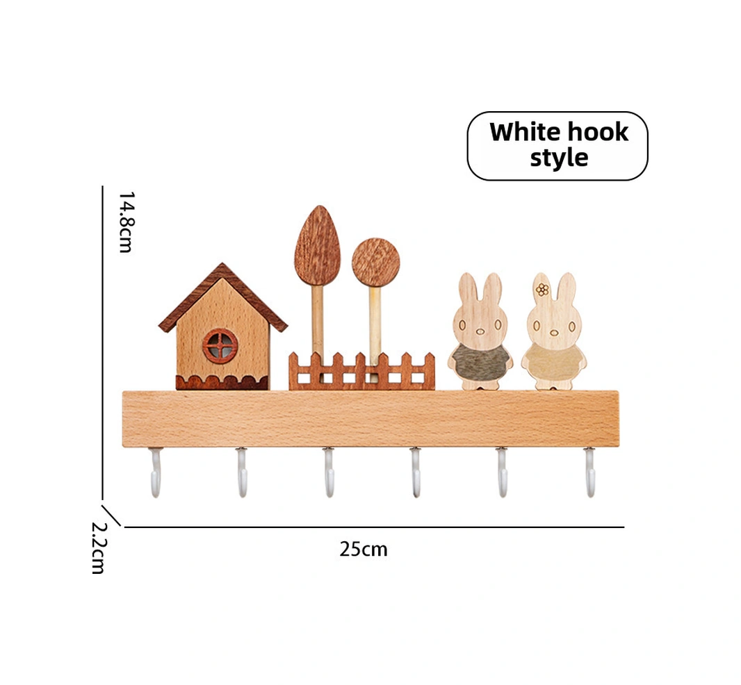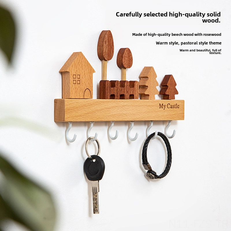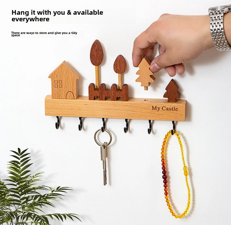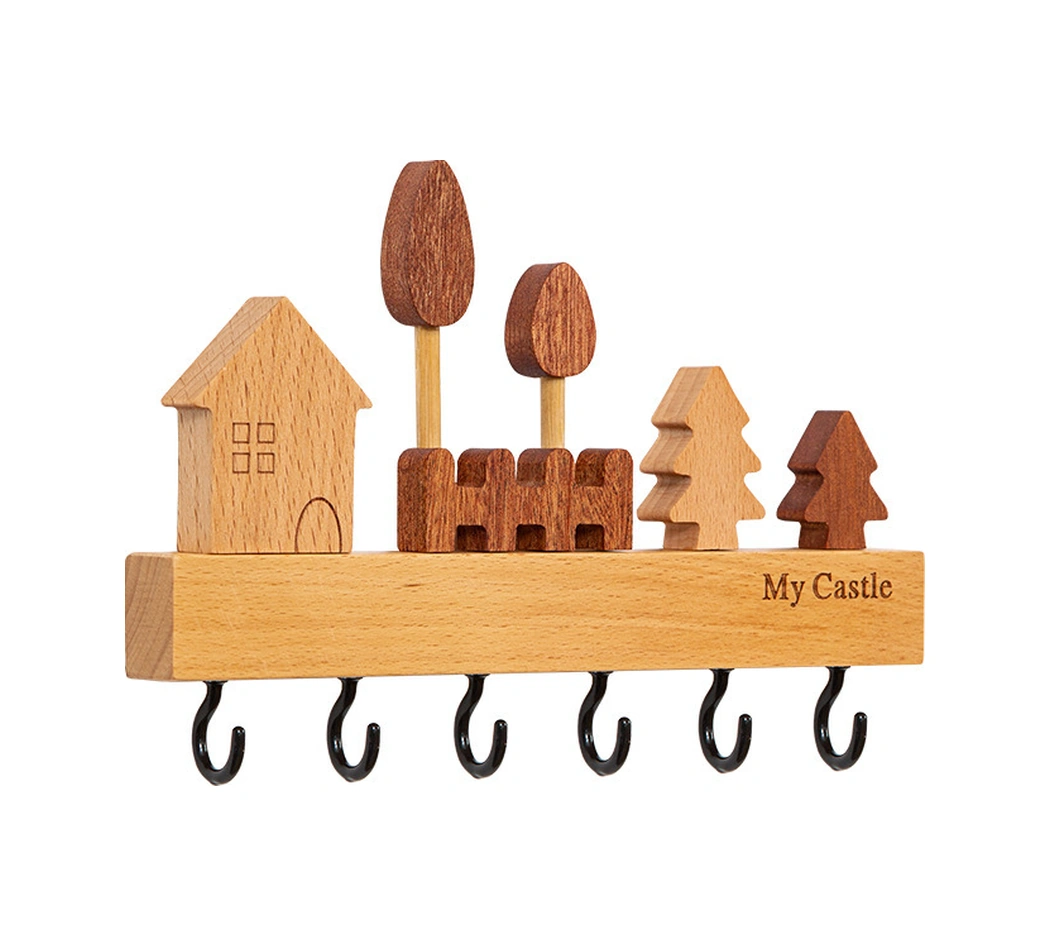 Fosenze Ahşap Anahtar Tutucu Duvar Tipi, Giriş Kapısı Nordik Stili, Delme Yok Kurulum, 6 Adet Kanca, Turuncu-yeşil Yeni Model