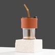 Fosenze İki Katlı Cam Kupa, Sıcak/soğuk İçecekler İçin, Toz Koruyucu Kapak Ve Cam Pipetli, 400 Ml