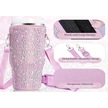 Fosenze Neopren Matara Kılıfı, El Ve Çapraz Çantasıyla, Taşlı Desenli, Araba Fincan Tutucusunda Sabitlenir, Spor Ve Outdoor Etkinlikler İçin, Pembe Pembe