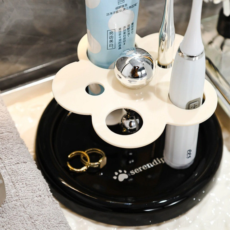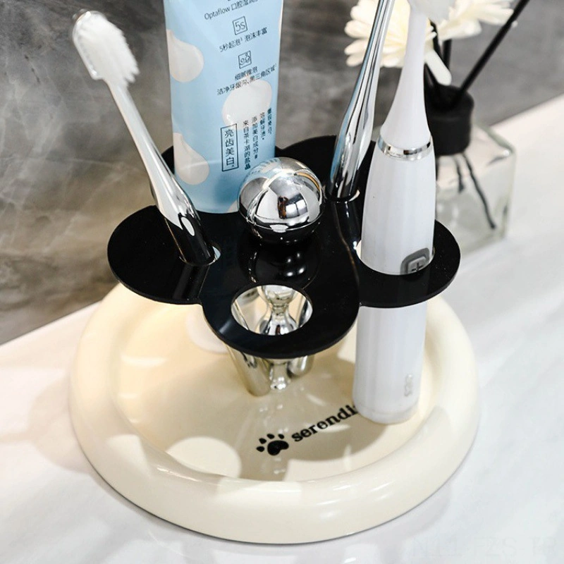 Fosenze Seramik Diş Fırçası Tutucu, Elektrikli Diş Fırçası Ve Parfüm Aletleri İçin Mükemmel Depolama, Hafif Ve Dayanıklı, Banyo Dekoru İçin Zengin Tasarım Süt Beyaz Tabanlı Çiçek Desenli Diğer