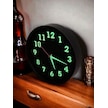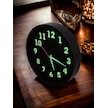 Fosforlu Gece Görünen Parlayan Siyah Duvar Saati Çap 22 Cm Camsız Siyah