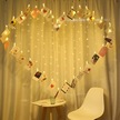 Fotoğraf Asılabilen Kalp Şeklinde Mandallı 2x1,5 Sarı Perde Led, Sevgiliye Sürpriz İçin Fotoğraf Albümü