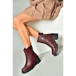 Fox Shoes R654006503 Bordo Hakiki Deri Kalın Topuklu Kadın Bot Bordo