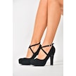 Fox Shoes Siyah/Siyah Nubuk Platform Topuklu Kadın Ayakkabı M3480 (539484041)
