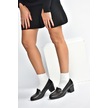 Fox Shoes V468707503 Siyah Hakiki Deri Kalın Topuklu Kadın Ayakkabı Siyah