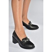 Fox Shoes V468708203 Siyah Hakiki Deri Kalın Topuklu Kadın Ayakkabı Siyah