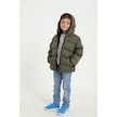 Freemen Erkek Çocuk Haki Polarlı Kürklü Kapüşonlu Su Geçirmez Rüzgara Dayanıklı Şişme Kışlık Mont Haki