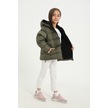 Freemen Kız Çocuk Haki Polarlı Kapüşonlu Su Geçirmez Rüzgara Dayanıklı Şişme Kışlık Mont Haki