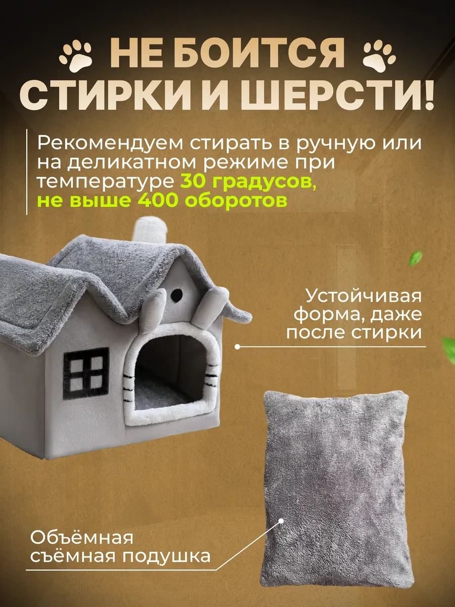 Sones Üçgen Kedi Kulübesi Sıcak Kalın Moğol Yurt Evcil Köpekler Kediler Evi Boyut: M, 40 40 30cm Koyu Kahve