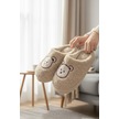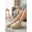 Ft 103 Panda Nakışlı Kadın Ev Terliği Peluş Terlik Çeyiz Ve Bohça Terliği Ses Yapmaz Kalın Taban Krem