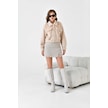 Kapüşonlu Düğmeli Peluş Mont - Kadın Beyaz