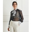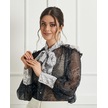 Fular Yaka Detaylı Transparan Desenli Gömlek Feminen Ve Şık Tasarım Siyah