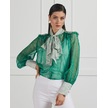 Fular Yaka Detaylı Transparan Desenli Gömlek Feminen Ve Şık Tasarım Yeşil