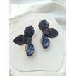 Füme Çiçek Desenli Küpe Altın - Siyah