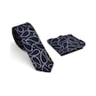 Füme Gri Şal Desenli Lacivert Dokuma Kumaş Mendilli Slim Fit Kravat // SDK-240112 Lacivert